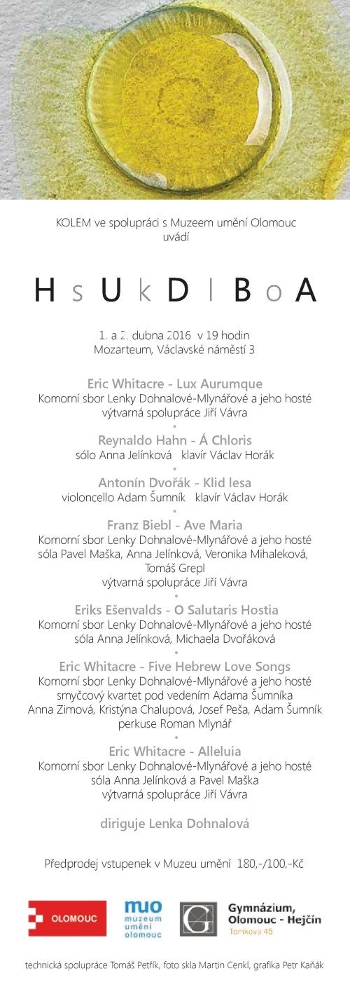 Srdečně zveme na přehlídku olomouckých sborů Olomouc zpívá. Vystoupíme v sobotu 1. dubna v 16:00 ve freskovém sále ZŠ Komenium.Vstupné dobrovolné.